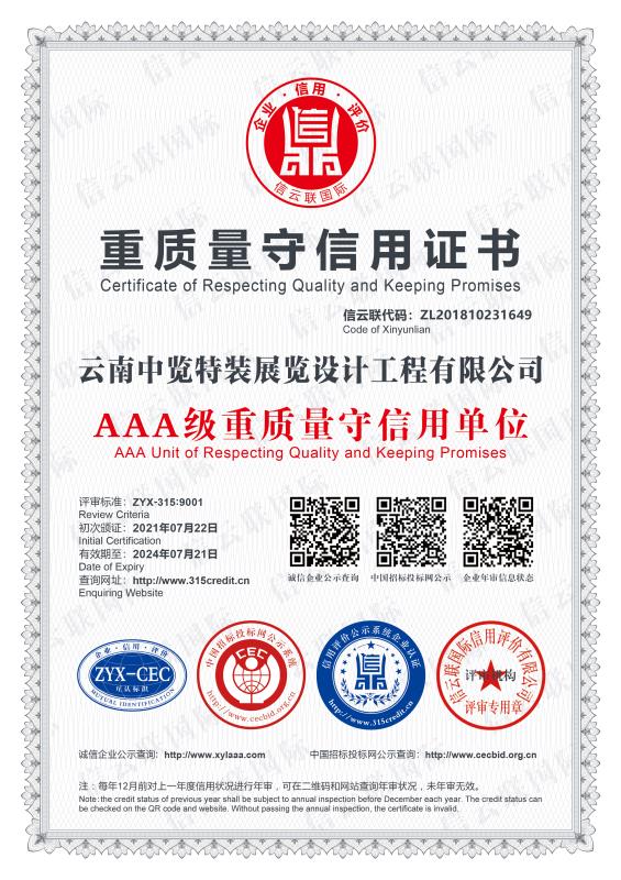 當前位置:昆明展覽公司 > 關于我們 > 資質榮譽 >