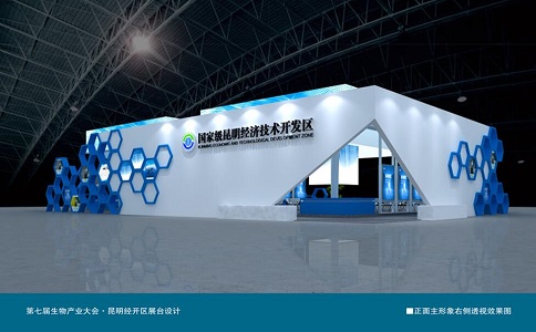 創意思路:此方案設計構思主要來源于蜜蜂的蜂巢和分子生物及生物量子還原的結構原理,經過設計師的提煉、演變、并結合此次生物產業大會的主題“生物資源,產業機遇”而產生創意靈感。