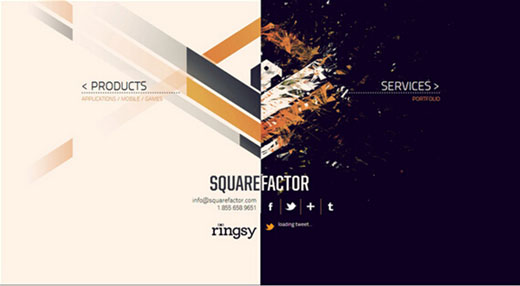 再看下一個(gè)頁(yè)面設(shè)計(jì),采用了兩種顏色拼湊的背景圖片,給人以強(qiáng)大的視覺(jué)沖擊,其大部分是空白處,用戶很快就能找到重點(diǎn),頁(yè)面簡(jiǎn)單大方。