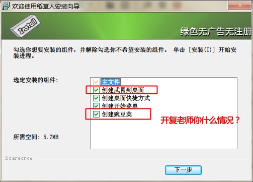 然后就是狗血的安裝之旅(最有趣的就是右上角那個「綠色無廣告無注冊」):